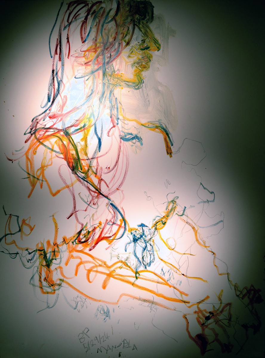 Oil paint stick and graphite crayon on canvas