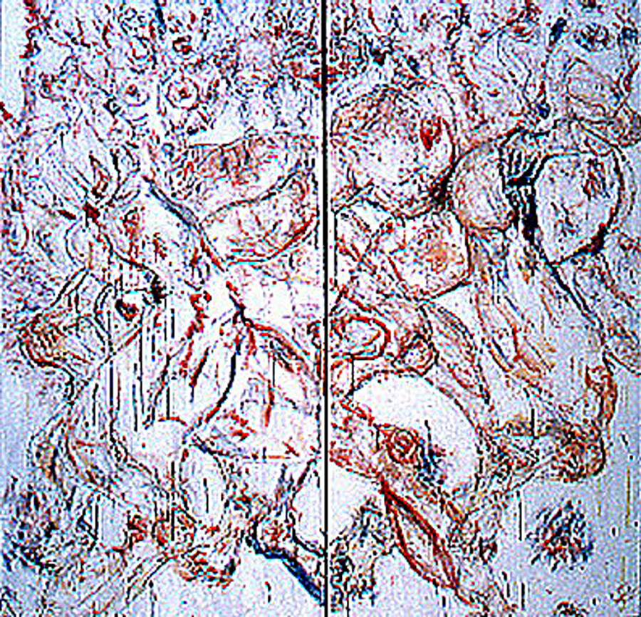 oil and ink on 2 plywood panels