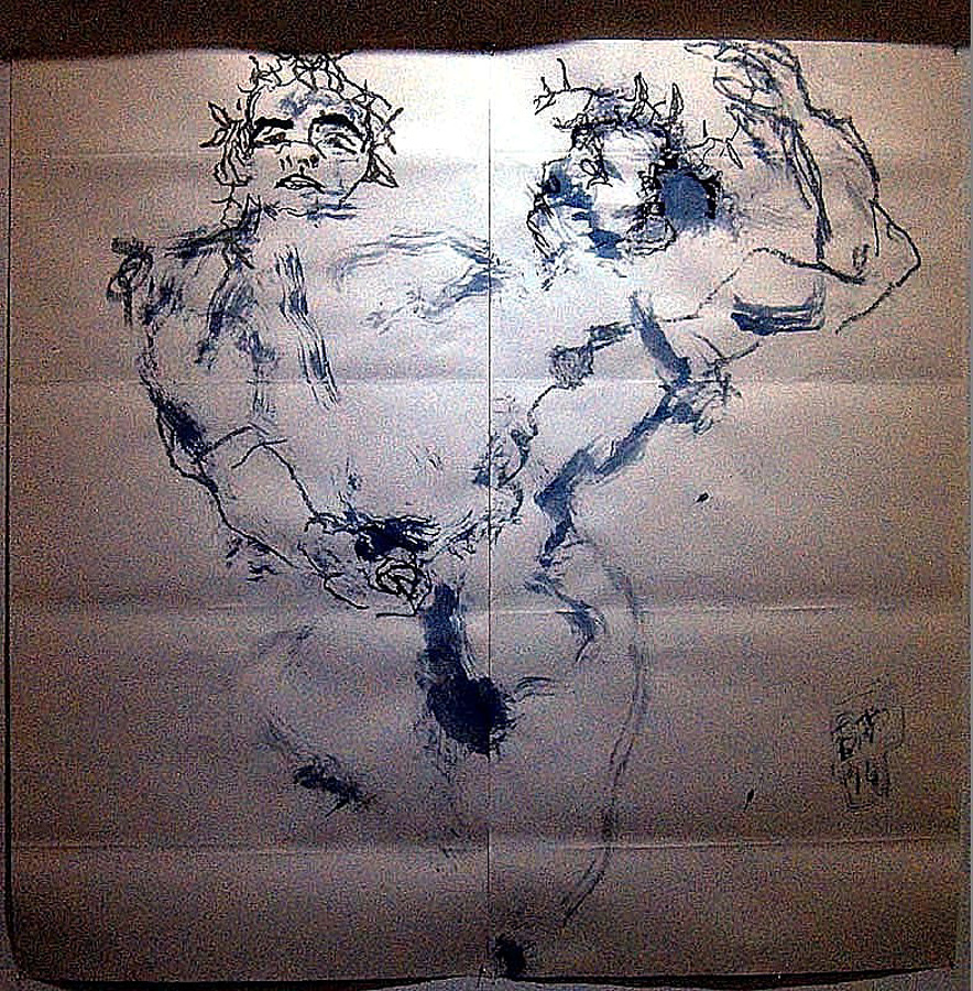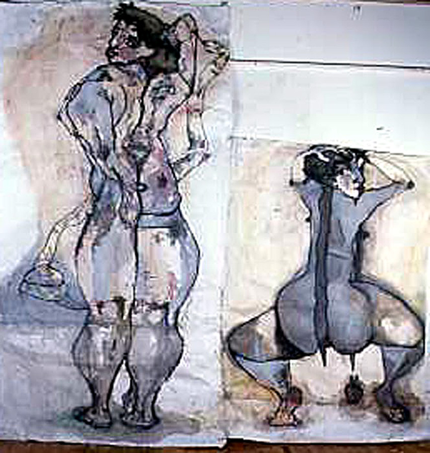 I experimented with the prints, putting one beside the other, moving them around until I got what I liked, to create a visual reference. Probably the best drawing in that show.