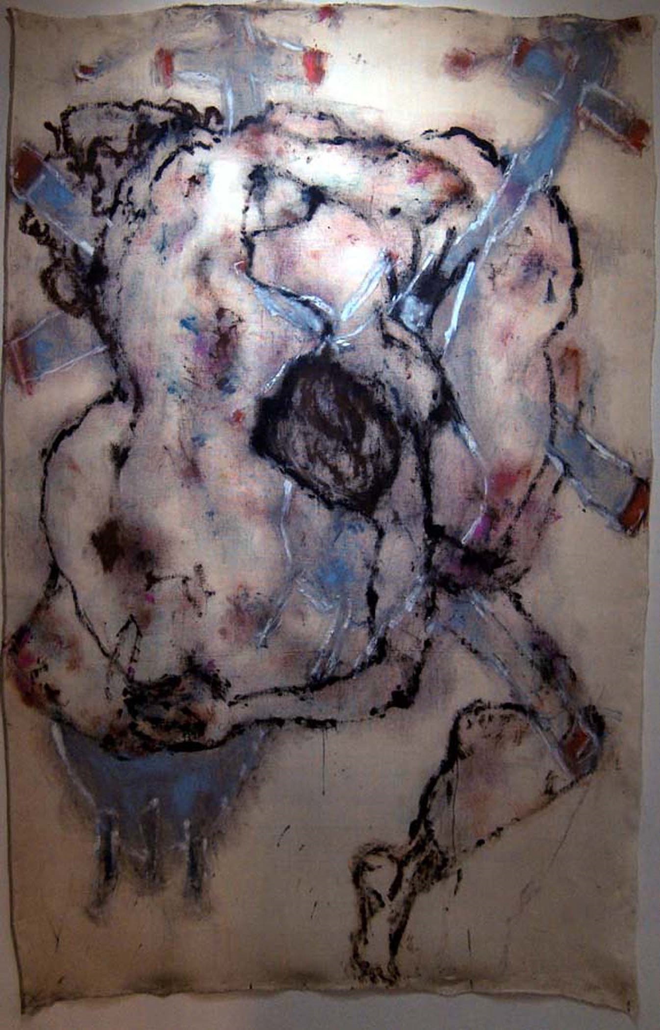 on unstretched white linen piece