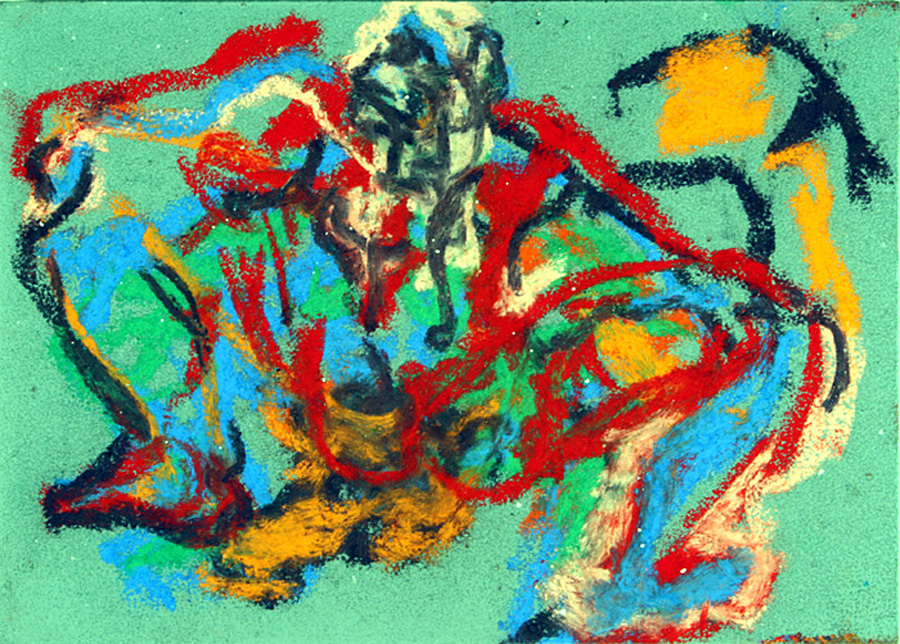 pastel on light blue card