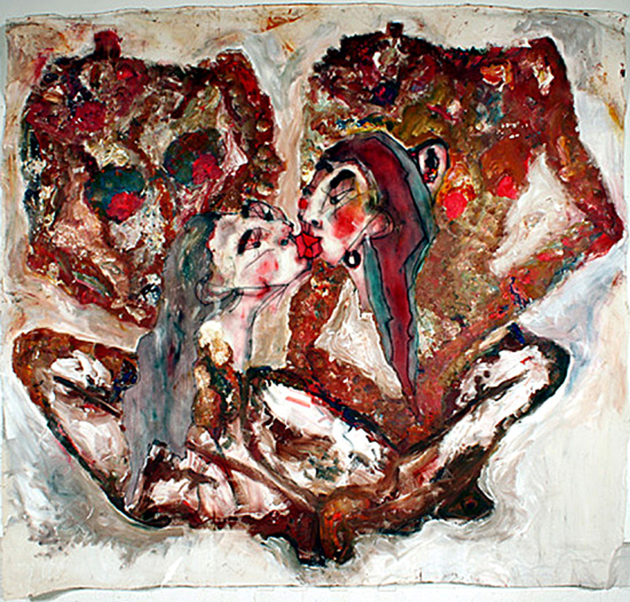 oil, pencil and acrylic white gesso on unstretched canvas